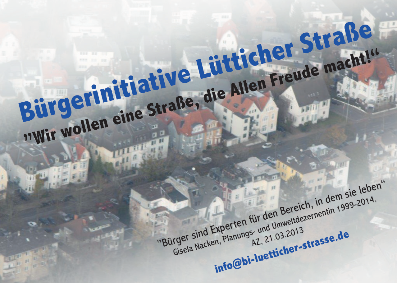 Um in unseren Verteiler aufgenommen zu werden, genügt eine kurze E-Mail: info@bi-luetticher-strasse.de